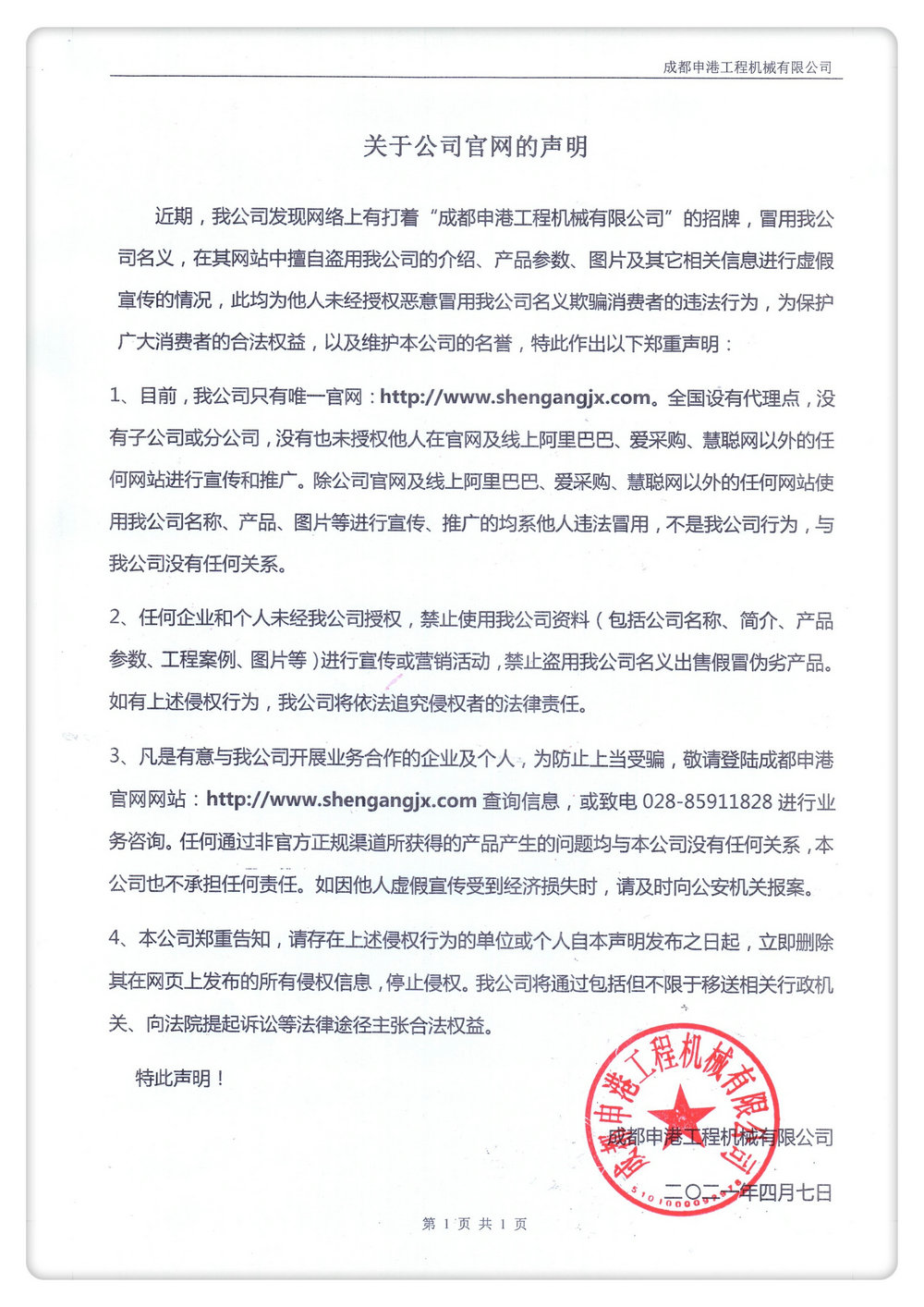 關于公司官網的聲明