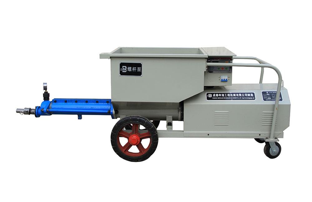 該泵結構新穎、構思獨特;避免了灌注稠漿較困難的不足,使用安全方便、效率高。本機主要由攪拌裝置、操作機構、輸漿體、增壓蝸桿、增壓定子、測壓、料斗、電控系統等組成,當用于噴護時,還包括噴射器,其特點如下: