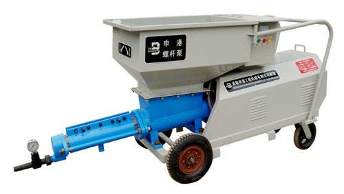 該泵結(jié)構(gòu)新穎、構(gòu)思獨(dú)特;避免了灌注稠漿較困難的不足,使用安全方便、效率高。本機(jī)主要由電動(dòng)機(jī)減速器、輸漿體、增壓蝸桿、增壓定子、測壓、料斗、電控系統(tǒng)等組成,當(dāng)用于噴護(hù)時(shí),還包括噴射器,其特點(diǎn)如下: