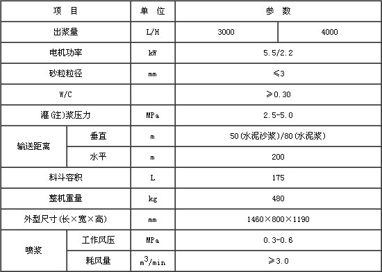 噴錨支護(hù)能有效調(diào)用巖土體自身的強(qiáng)度和自穩(wěn)能力,是提高巖土穩(wěn)定性和解決復(fù)雜巖土工程穩(wěn)定問(wèn)題的經(jīng)濟(jì)有效的方法之一,噴錨支護(hù)離不開(kāi)灌漿技術(shù),設(shè)計(jì)和施工對(duì)錨固灌注漿的要求越來(lái)越高,各種施工《規(guī)范》對(duì)灌注漿壓力和水泥砂漿的水灰比也做了嚴(yán)格的規(guī)定,一般的灌注漿設(shè)備難以滿足。