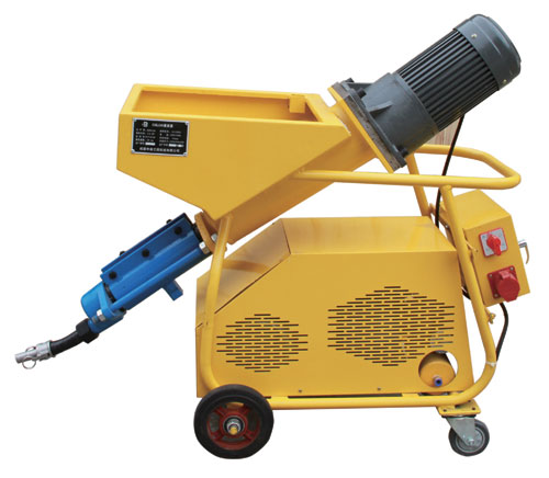 本機(jī)結(jié)構(gòu)新穎、構(gòu)思獨(dú)特;避免了灌注稠漿較困難的不足,使用安全、方便、效率高。本機(jī)由電動(dòng)機(jī)、減速器、料斗、增壓定子總成、注漿管和電氣系統(tǒng)等組成。當(dāng)用于濕噴時(shí),還包括噴射器和空壓機(jī)(用戶可選配),其特點(diǎn)如下: